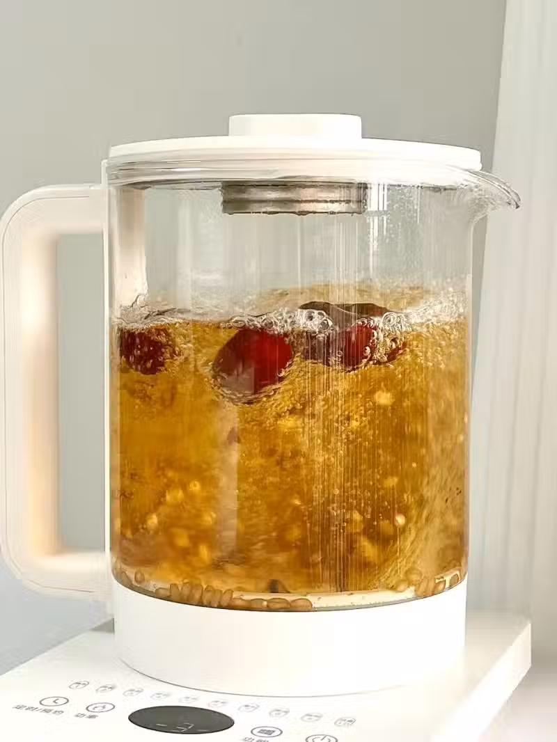 2️⃣、扔到養生壺裡加上水,按下煮茶鍵,20來分鐘就可以煮好了。