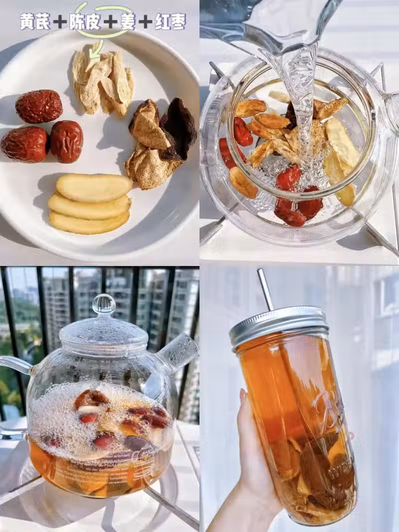 作用: 黃芪補氣固表,紅棗補血,陳皮理氣健脾、燥濕化痰,並能緩解黃芪可能引起的燥熱。非常適合熬夜較多、飲食油膩、一進補就易上火(如咽喉不適、腹脹)的人飲用,幫助身體順暢運行,恢復精力,也有益於肝腎功能。