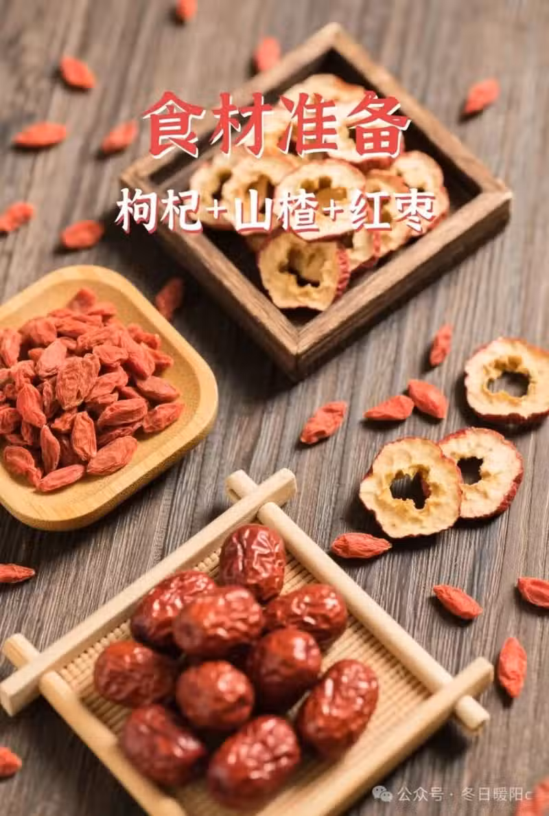 山楂干 12g、枸杞 15g、紅棗 5 顆(撕開)、桂圓 3 顆(去殼)
