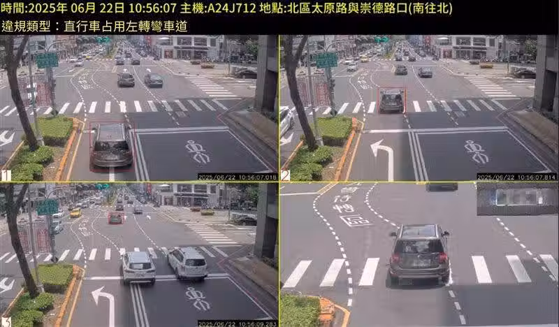 台中市警二分局指出,「中清路與五權路口」、「雙十路與精武路口」、「崇德路與太原路」、「三民路與育才北路」,4處路口於去年12月1日增設科技執法設備,針對闖紅燈、跨越雙白線、不依標誌標線行駛及未停讓行人等高風險違規行為進行精準取締。