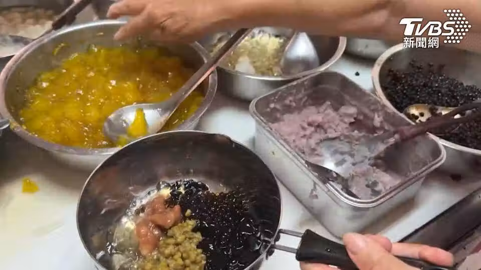 台南永康一家擁有50年歷史的老店,別出心裁地使用平底鍋盛裝刨冰,讓人聯想到台南知名的鍋燒面。這款「平底鍋冰」層層堆疊如小山般,配料豐富多樣,包含仙草、綠豆、芋泥等多種選擇,顧客可自由調配。