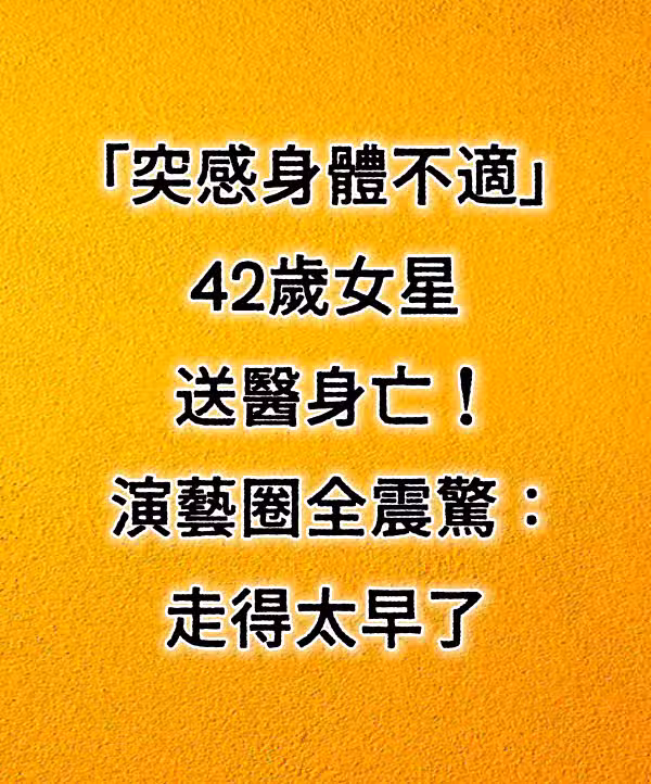 「突感身體不適」42歲女星送醫身亡!演藝圈全震驚:走得太早了