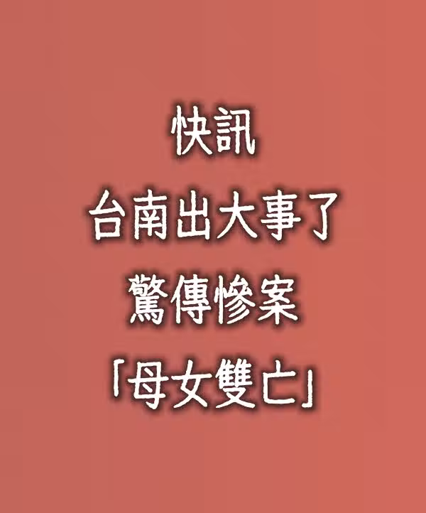 快訊/台南出大事了 驚傳慘案「母女雙亡」