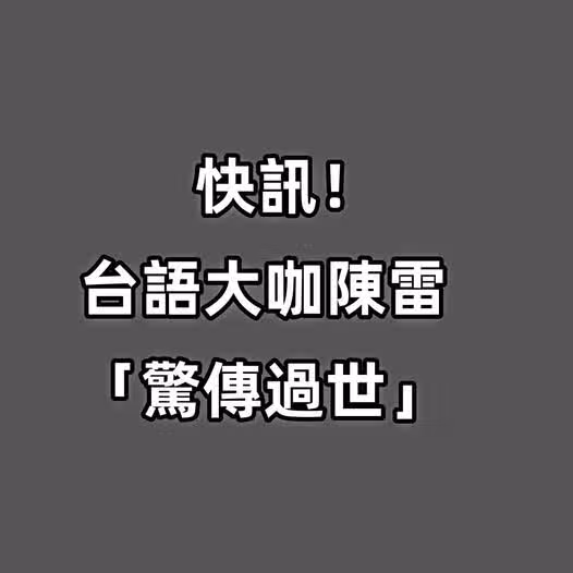 根據《ETtoday新聞雲》報導,投身台語文學推廣的知名作家陳雷,於6月27日在加拿大多倫多辭世。