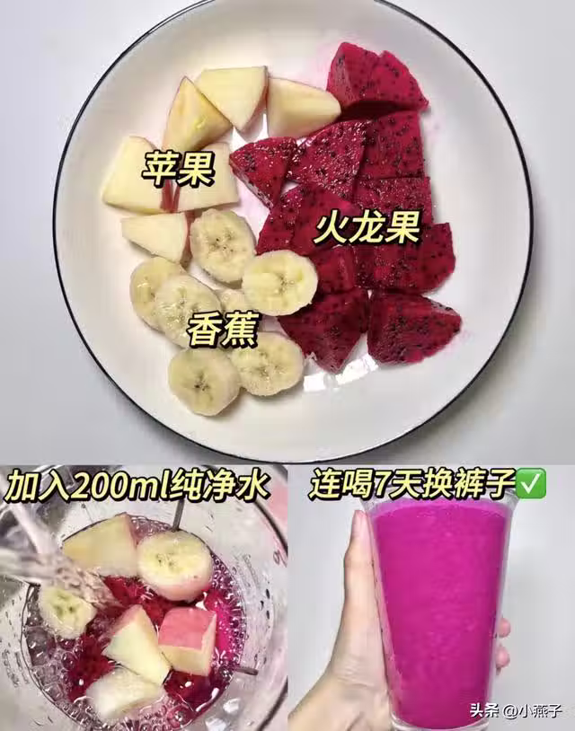 ✅ 配方:火龍果1/2個+香蕉1根+蘋果1/2個+200ml水!