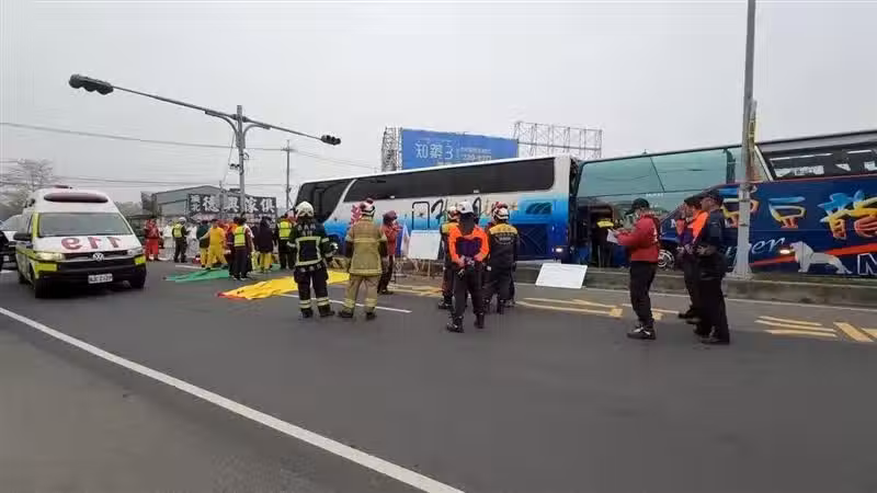 這起事故造成後方遊覽車的駕駛與隨車服務人員一度受困車內,警消獲報後先派遣8部救護車到場進行救援。