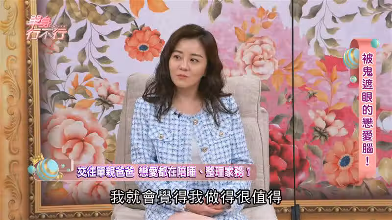 被問到是否太快投入「媽媽」一角,咨商心理師吳姵瑩認為,楊佩潔應該思考在「類媽媽」與「女友」角色之間,是否能感受到平衡。對此,楊佩潔透露孩子們不在時,就是她與嘉育的約會時間,兩人也約定每周至少約會一天,儘管有時難以挪出完整空檔,不過對方依舊會在零碎時間主動提起,「我就會知道他的心思有在想跟我約會這件事情上,我就會覺得OK了。」