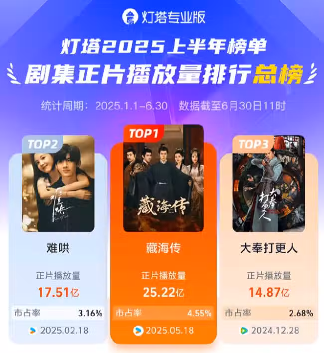 各位讀者,以上十部電視劇是2025上半年播放量最高的電視劇,你們看哪部了呢?你認為哪部最好看呢?