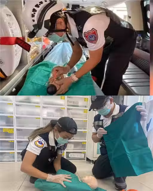 情況緊急,救護人員迅速作出決定,將孕婦搬上救護車,並決定在車上進行緊急接生。