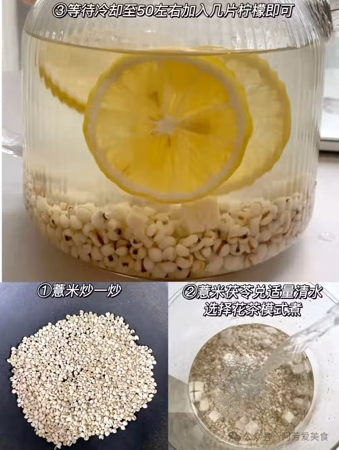 煮好的水泛著淺金黃色,薏米沉在鍋底圓鼓鼓的。第一口喝下去微酸帶點穀物味,我加了半勺蜂蜜,口感好多了。