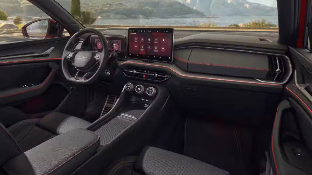 Kodiaq RS車內透過紅色縫線等元素提升性能感受。(圖片來源/ Škoda)