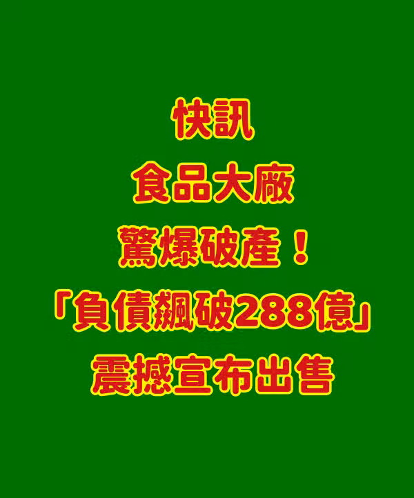 快訊/食品大廠驚爆破產!「負債飆破288億」震撼宣布出售!!