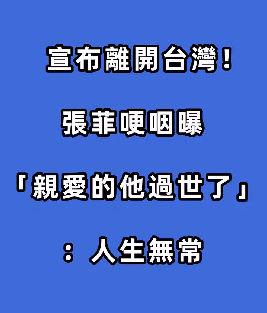 宣布離開台灣!張菲哽咽曝「親愛的他過世了」:人生無常!
