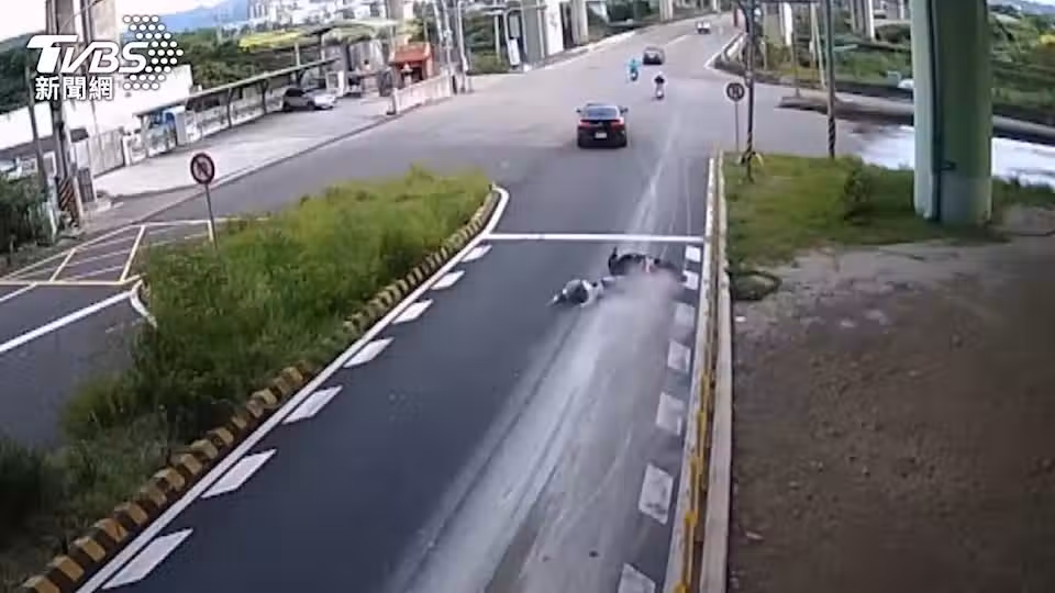 砂石車泥漿染路面!三義火炎山「2騎士慘摔」監視器全錄下