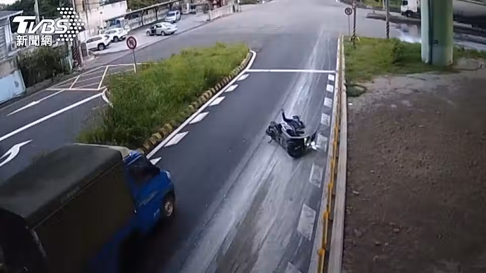 砂石車泥漿染路面!三義火炎山「2騎士慘摔」監視器全錄下