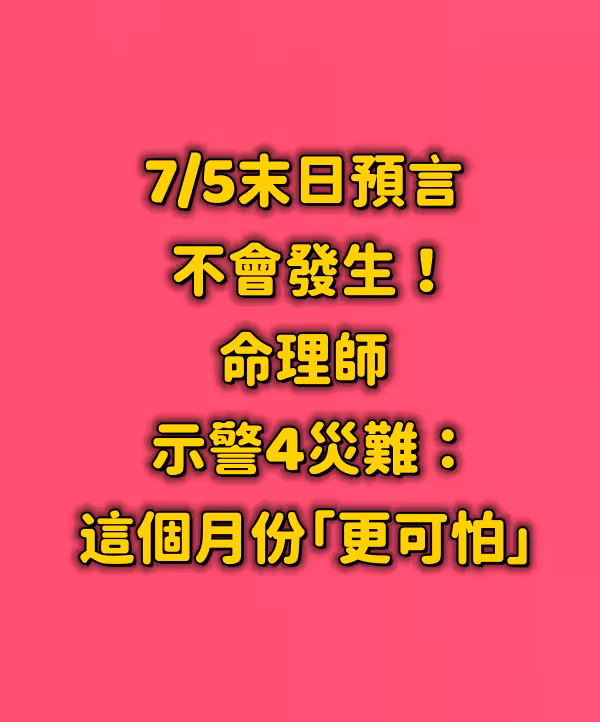 7/5末日預言不會發生!命理師示警4災難:這個月份「更可怕」