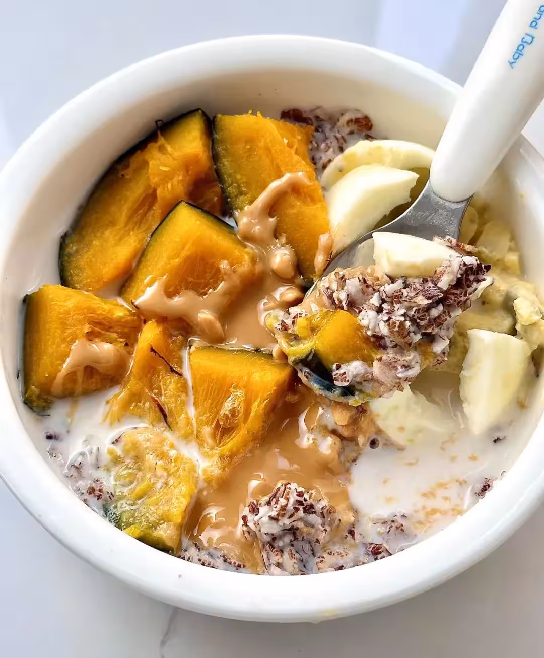 這個燕麥南瓜牛奶碗真的是太好吃了,南瓜和牛奶都是鋅的來源之一,燕麥可以提供持久能量和膳食纖維,早上起床來不及做早餐,給孩子做一碗這個,幾分鐘就能搞定,吃完一上午都不會餓。而且營養滿滿,孩子也愛吃。