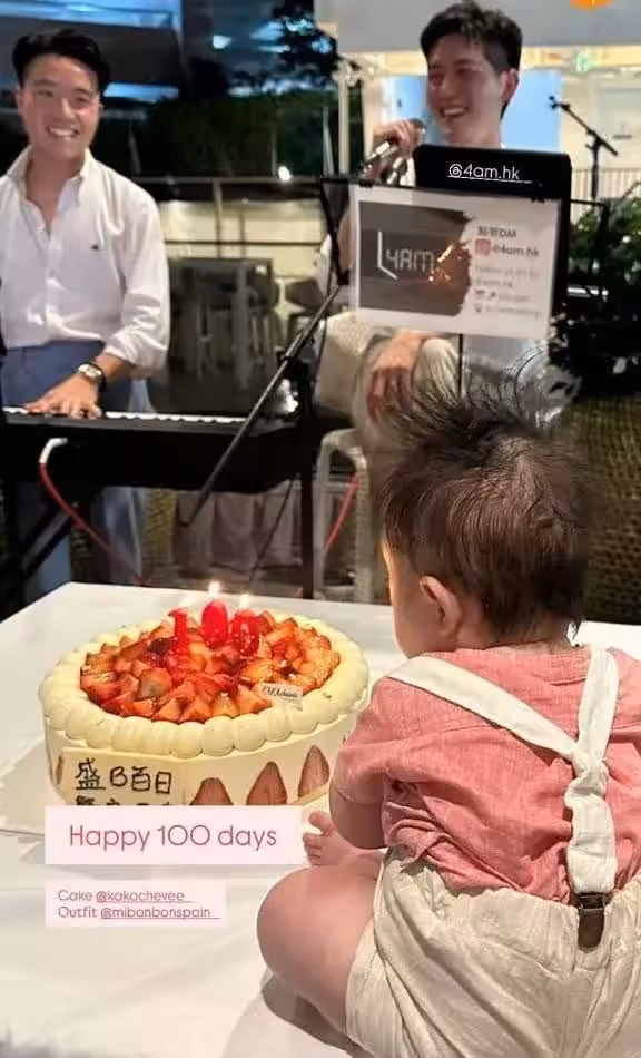 前港姐被前任暗諷非真正才女,為愛子辦百日宴老公抱娃唱歌顯父愛