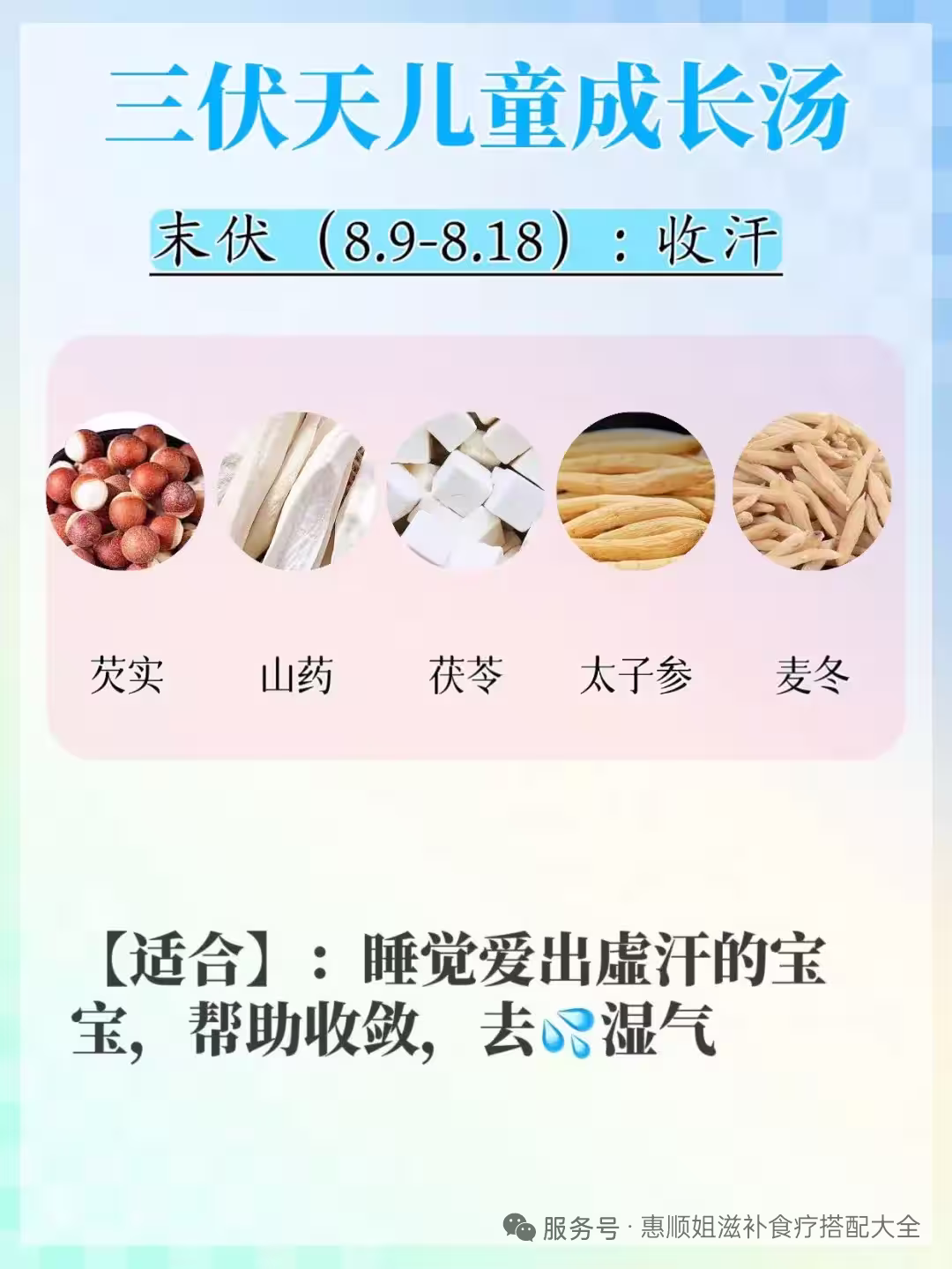 💦【止汗小空調】末伏推薦 芡實5g+山藥6g+麥冬6g+太子參5g+茯苓6g 👉空調房還滿頭大汗的娃必試