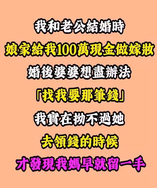 我和老公結婚時,娘家給我「100萬現金」做嫁妝。婚後婆婆想盡辦法「找我要那筆錢」,我實在拗不過她…去領錢時 「才發現我媽早就留一手」