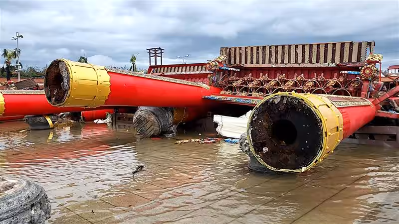 ▲南鯤鯓代天府牌樓遭重創倒塌。(圖/翻攝畫面)