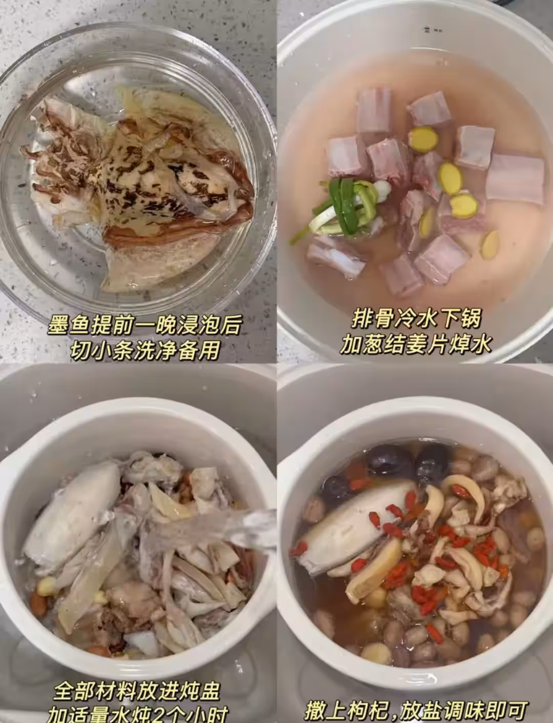 食材:墨魚乾、排骨、蓮子、花生、紅棗、枸杞