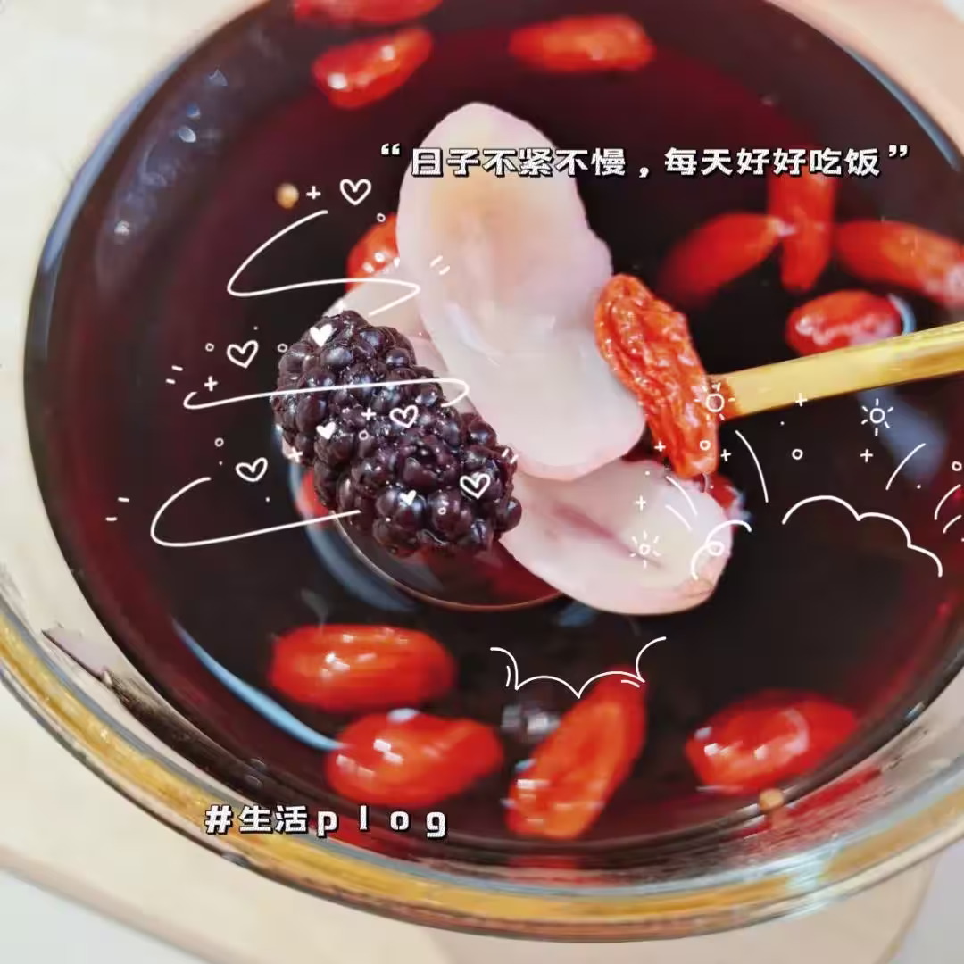 這湯是我婆婆教我的「養肝妙方」。桑葚補肝血,百合安神,上次熬夜追劇後,第二天臉黃得像蠟紙,喝了3天這湯,晚上不僅睡得沉,晨起臉色都透亮了,肝火旺引起的眼乾眼澀也輕了。桑葚煮完後湯是深紫色,帶點天然的酸甜味,適合喜歡喝甜湯的,就是桑葚干別放太多,不然會酸。