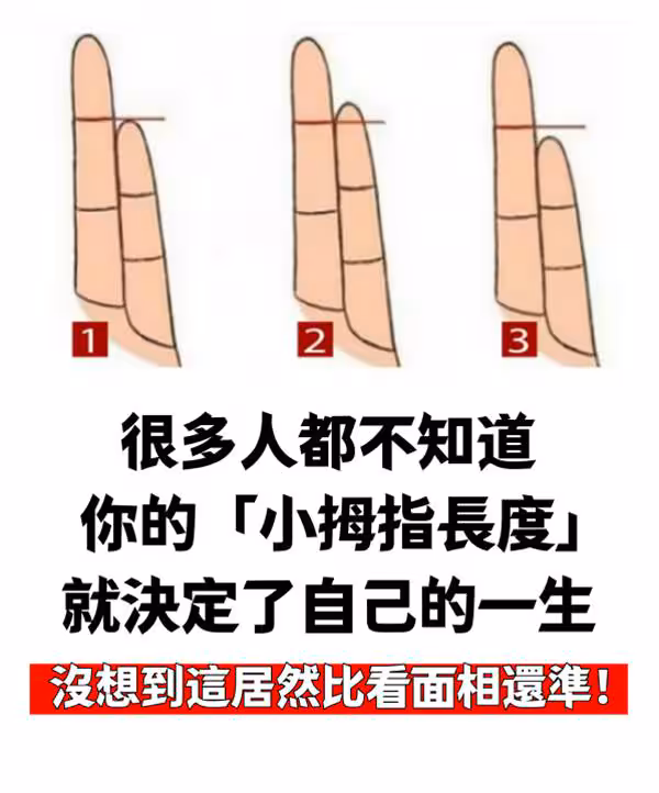 很多人都不知道,你的「小拇指長度」就決定了自己的一生,沒想到這居然比看面相還准!!