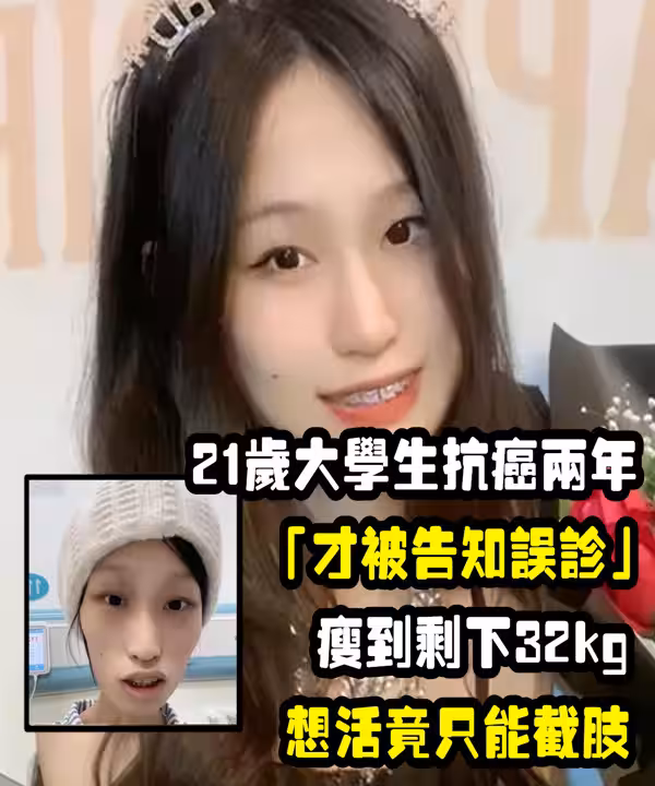 21歲大學生抗.癌兩年「才被告知誤診」!瘦到剩32kg「想活只能截.肢」