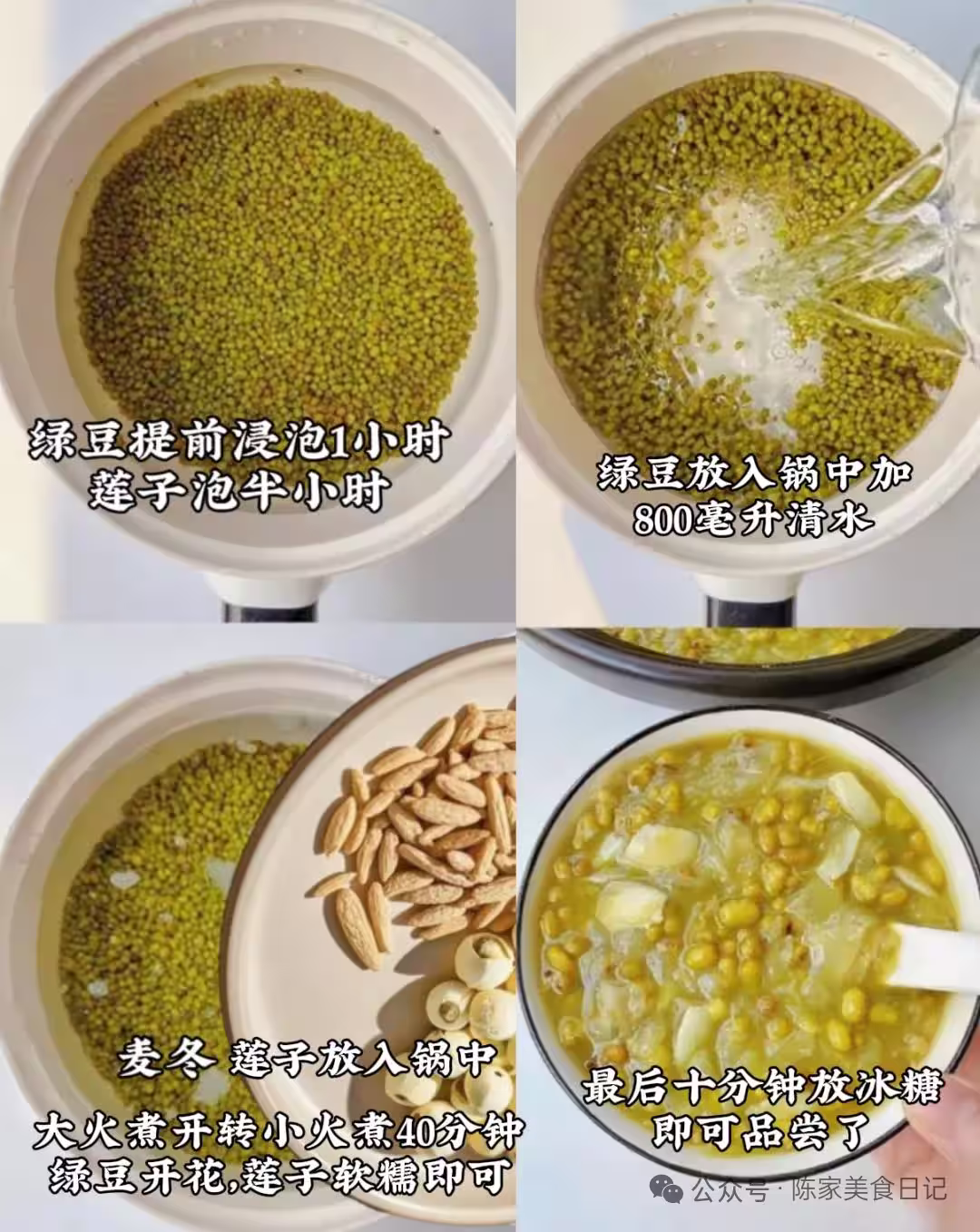 綠豆別煮太爛,保留點顆粒感更清爽;體質虛寒的人少放綠豆(15克),多煮10分鐘減寒性。