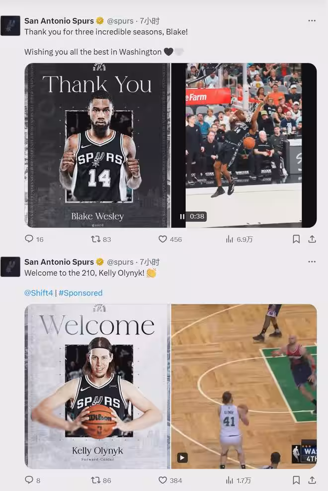 7月10日,馬刺官方宣布,將馬拉基-布蘭納姆、布雷克-韋斯利,以及2026年次輪簽送至奇才,3換1交易得到凱利-奧利尼克。這個次輪簽是雷霆、獨行俠和76人三者中最差的那一個,大機率是二輪末段,也不值什麼錢。