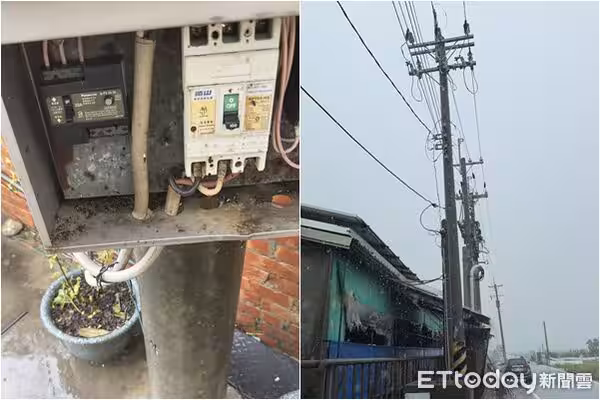 ▲大家事前已關閉總電源才入場勘查,未料卻又發生漏電,一旁的高壓電桿疑似是元兇。(圖/嘉義縣養豬協會理事長林志達提供)