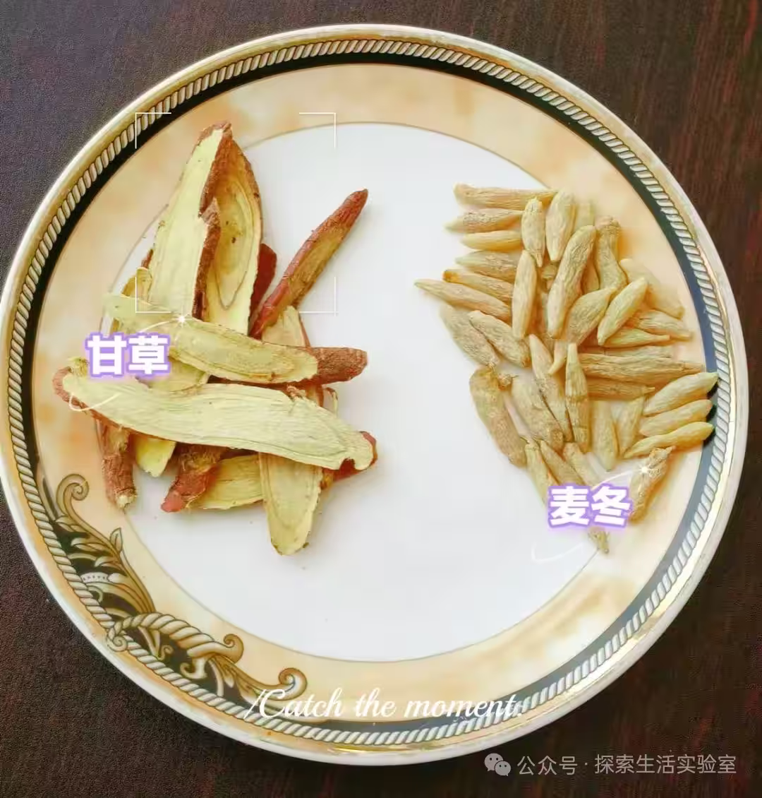 1️⃣麥冬用溫水泡5分鐘(上面有浮塵),甘草用流動水沖10秒;