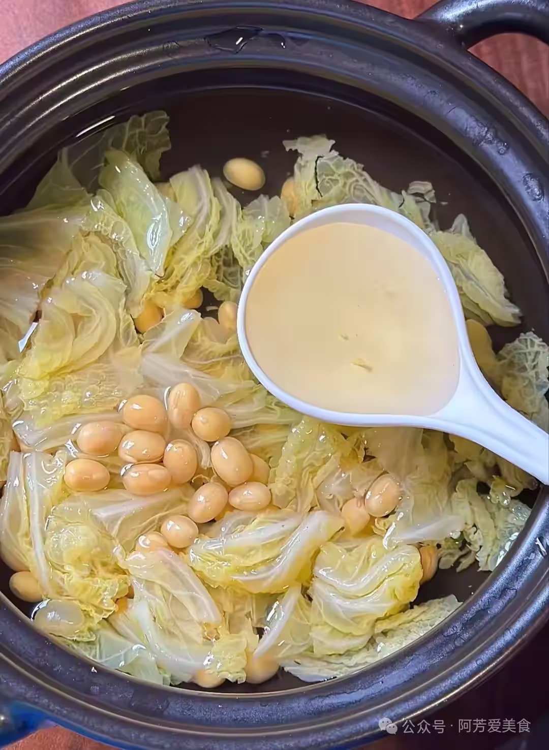 黃豆需要充分煮軟才能釋放風味,白菜則不宜久煮以免營養流失。爺爺以前總強調「食材本味最養人」,如今試過才懂這話的深意。尤其城市生活節奏快,這種不用調味的簡樸做法反而更貼合日常需求。