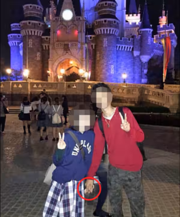 日本有一名女高中生像一般情侶一樣跟男友一起去東京迪士尼樂園玩,晚上氣氛很好,兩人就在仙杜瑞拉的城堡前請人幫忙拍張合照,但沒想到放大一看.....竟多了一位....小三?