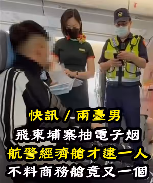 快訊/兩台男飛柬埔寨抽電子煙!航警經濟艙才逮一人,商務艙竟又一個