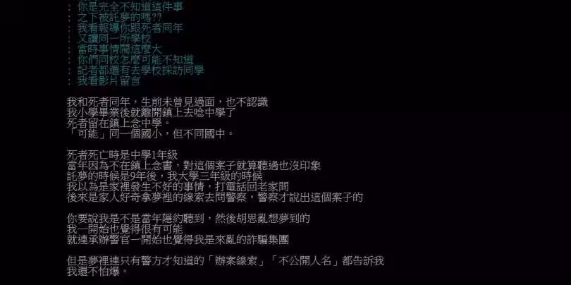 雖然因為「託夢」而重啟辦案引發社會質疑,然而弔詭的是,早在警方介入調查後,就監聽到家人電話表示「一定會謝罪」、「很怕曉菁找上門」等語,加上崔女的媽媽也曾坦言「很怕女兒到夢理」,更特地到廟裡求來符咒,鎮壓在孩子的照片上面,根本就不合常理,所以才希望繼續調查,尤其男大生的描述夢中女孩坦言「是我的親戚做的」,也照印象「畫出來的生活照」,幾乎都跟線索吻合,然而就在希望重啟案件時,崔曉菁的外婆竟然拍桌大喊:「不要辦!」發現失態後,竟還變臉改口:「不要想起悲傷的事!」啟人疑竇。