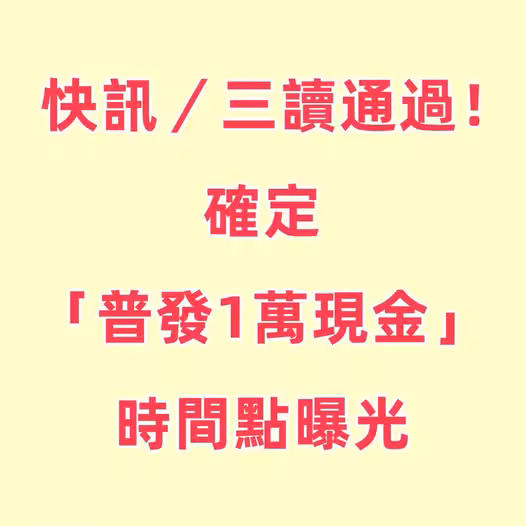 快訊/三讀通過!確定「普發1萬現金」 時間點曝光