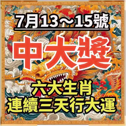 7月13~15號連續三天行大運,中大獎的生肖