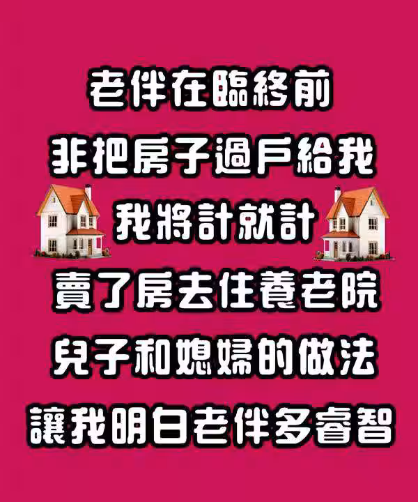 老伴臨終前非把房子過戶給我!我將計就計「賣了房去住養老院...」 兒子和媳婦「讓我明白老伴多睿智!」