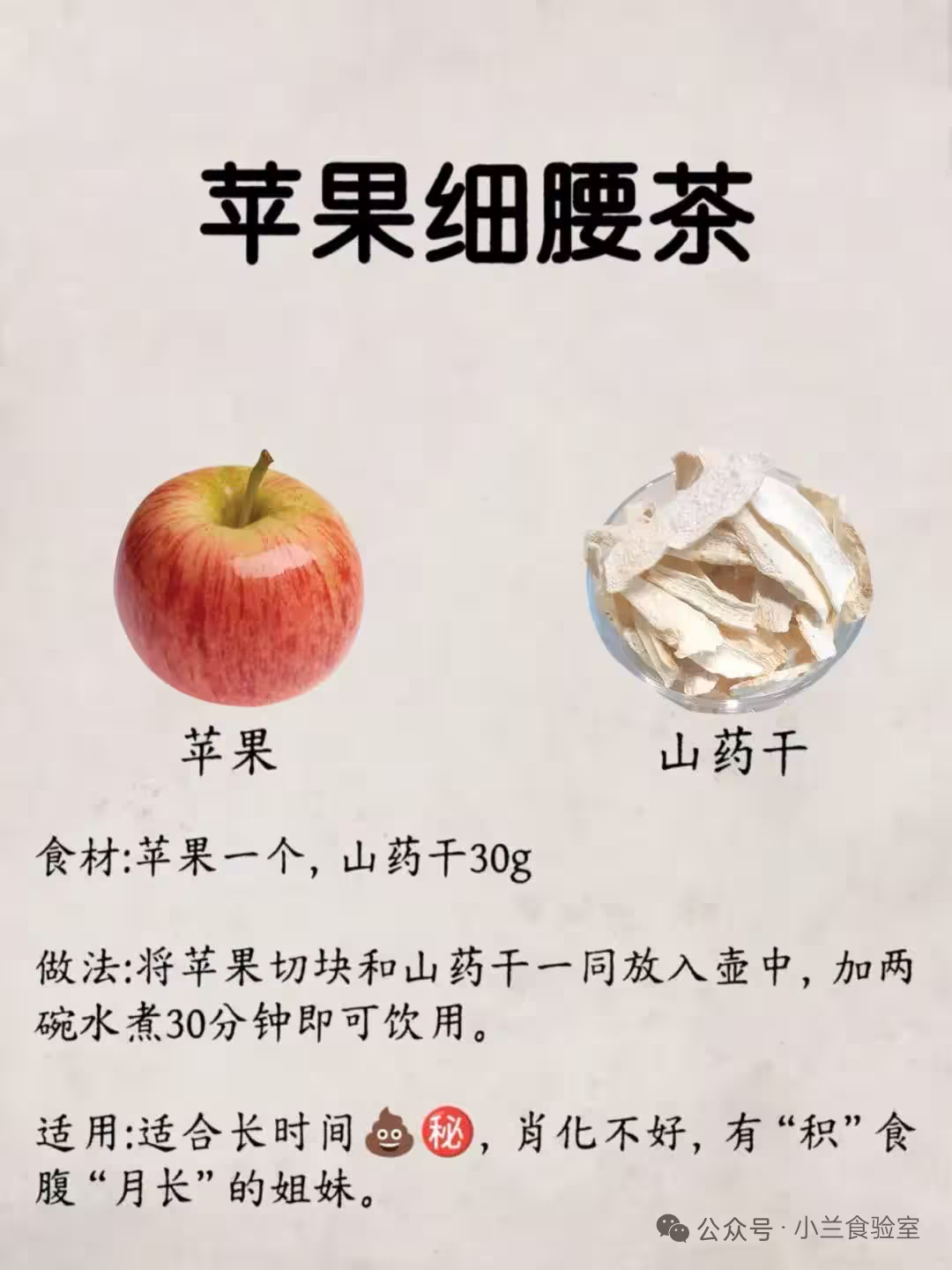 《本草綱目》記山藥「益腎氣」,蘋果「通滯結」,化解中焦瘀堵,肚腩漸平。晨飲一杯,腸順腹輕,打造「細腰」美態。