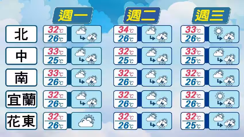 至於颱風動態,天氣風險公司資深顧問吳聖宇在臉書發文指出,目前海面上有2個熱帶系統,第5號颱風百合及熱低壓07W都對台灣沒有影響,周四 (17日)之後皆已經北上,太平洋高壓將有機會重新回到日本南方海面到琉球一帶海域,接著高壓外圍的偏東到東南風就可能跟西南季風配合,在南海到菲律賓以東海域重建新一輪的西南季風槽,當中應該會有新的熱帶擾動發展,周末期間(19、20日)的天氣好壞就跟這個預報中的新熱帶擾動有關。