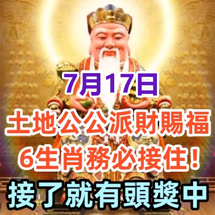 7月17日:土地公公派財賜福,6生肖務必接住!接了就有頭獎中
