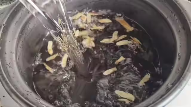 這是因為黃芪我們需要先用大火煮,才能把黃芪當中的成分給煮出來,接下來蓋上鍋蓋,用大火先把鍋裡面燒開,再轉中小火煮上5到8分鐘。