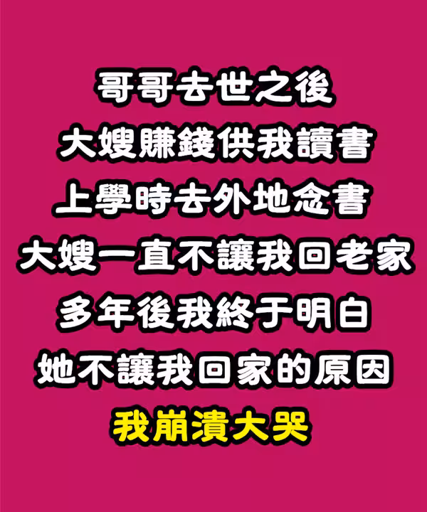 哥哥去世後「大嫂賺錢供我讀書」不准我輟學!上學時去外地念書「大嫂一直不讓我回老家」說交通費太貴...終於事業有成回到家「看見大嫂後」我崩潰