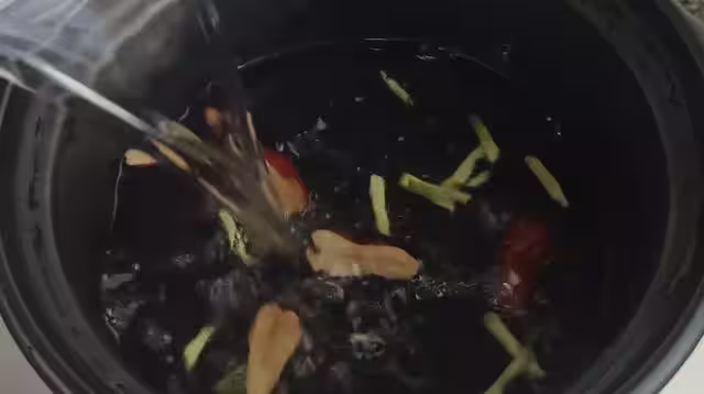 這個時候就可以,再次把剝好的雞蛋放入鍋中來入味,然後枸杞也一併倒入鍋中,最後是兩塊紅糖,當然不喜歡甜味的朋友可以不放,反之也可以多放入一些,最後再次蓋上鍋蓋,用小火給它煮上3到5分鐘左右。
