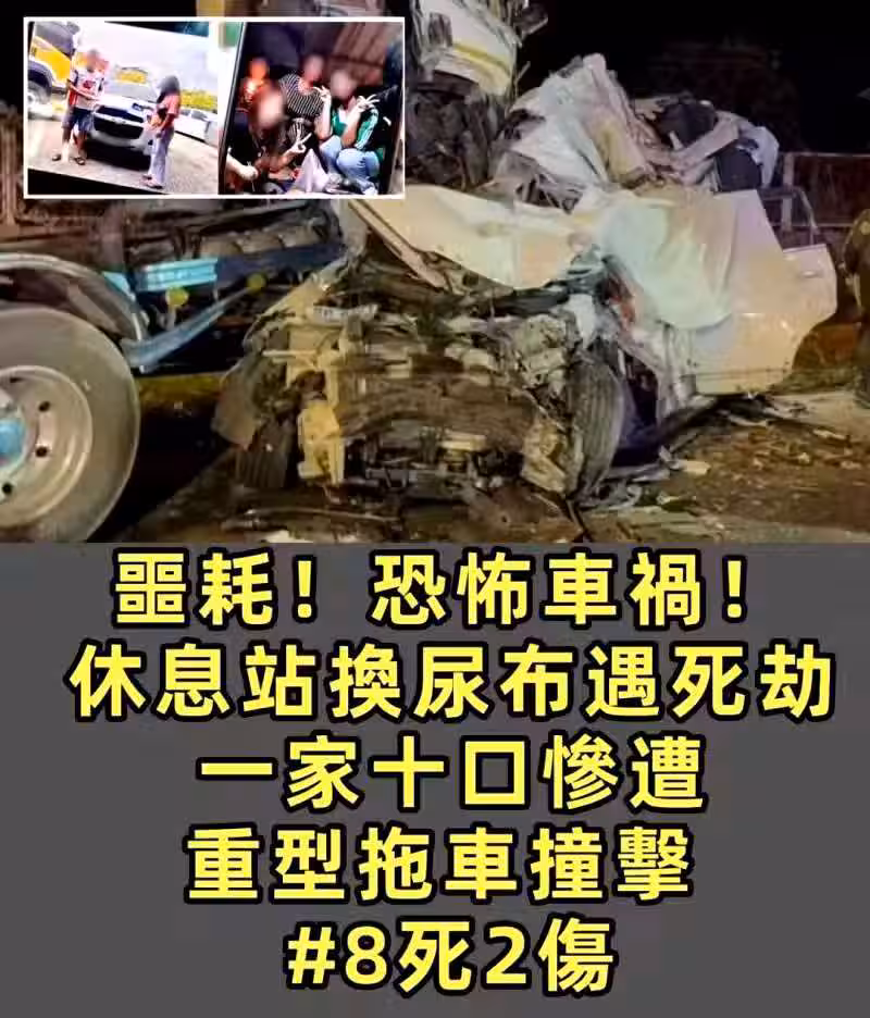 休息站換尿布遭拖車猛撞 10人家庭8死2重傷