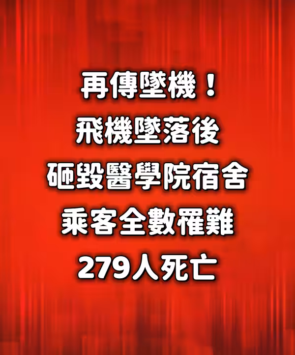 再傳墜機!飛機墜落後,砸毀醫學院宿舍,乘客全數罹難,279人死亡