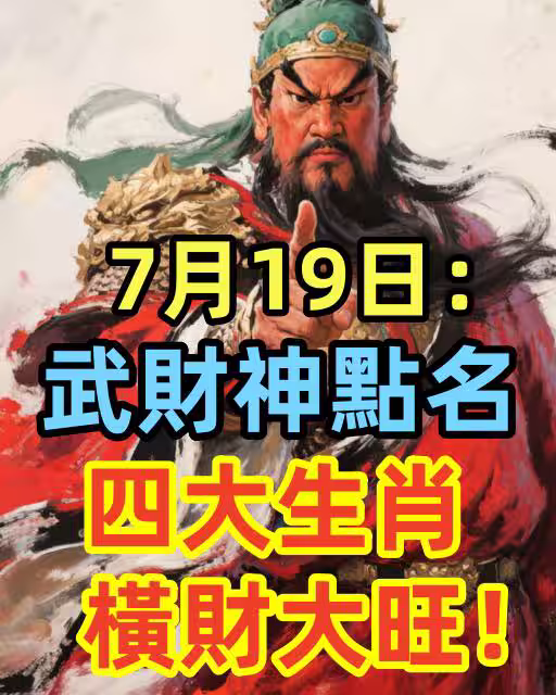 7月19日:武財神點名!四大生肖,橫財大旺!
