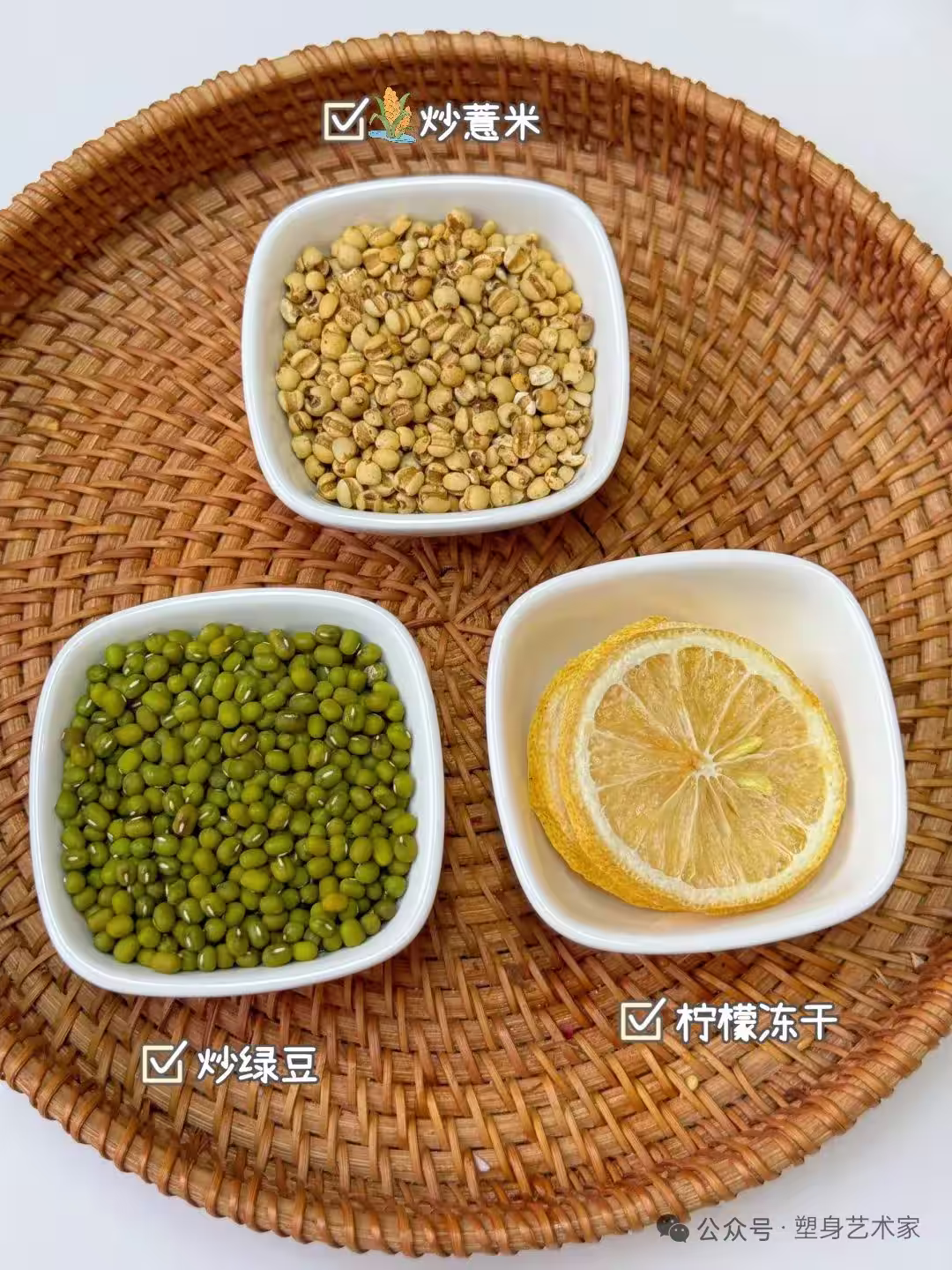 薏米+綠豆用開水燜泡30分鐘,或者煮15分鐘